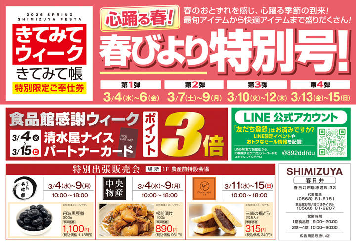 清水屋春日井店では「きてみてウィーク/限定奉仕きてみて帳」を開催いたします。